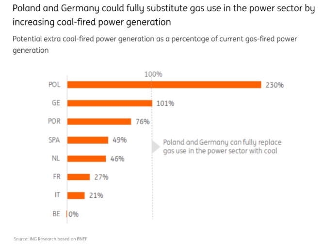 The Netherlands lifted the 35% production cap for coal plants which could substitute 46% of gas-fired power generation, if the four remaining coal plants are fully utilised.