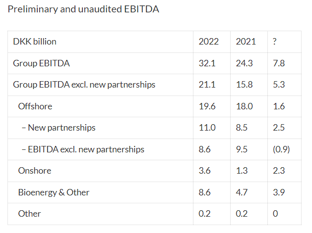 Ørsted presents operating profit (EBITDA) for 2022 based on preliminary and unaudited reporting.