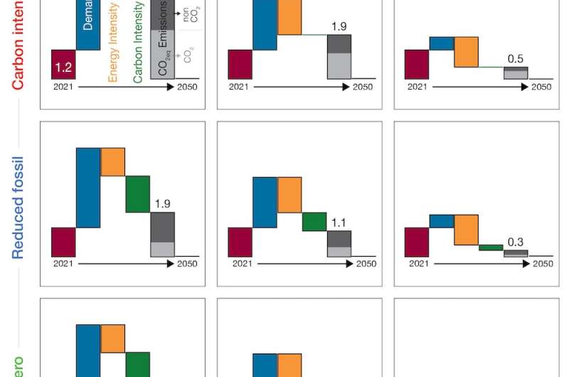 We developed and analyzed nine scenarios spanning a range of projected passenger and freight demand, energy intensity and carbon intensity of aviation to explore how the industry might get to net-zero emissions by 2050.
