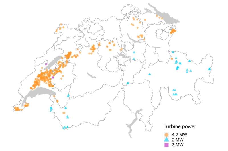 Based on these calculations, the researchers created a map showing the approximate distribution of wind turbines. "The points should be read as national focus areas and not as exact locations for wind turbines," says Reto Spielhofer, the lead author of the study, who is also a researcher in Grêt-Regamey's research group.
