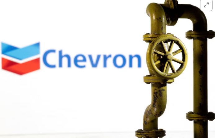 FILE PHOTO: The logo of Chevron is seen at the company's office in Caracas, Venezuela April 25, 2018. REUTERS/Marco Bello/File Photo/File Photo Acquire Lice…