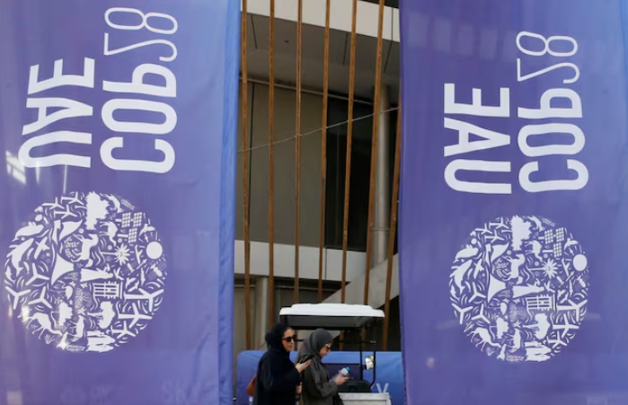 Delegates walk at Dubai's Expo City during the United Nations Climate Change Conference (COP28) in Dubai, United Arab Emirates, December 12, 2023. REUTERS/T…