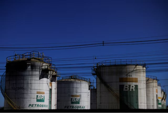 A general view of the tanks of Brazil's state-run Petrobras oil company following the announcement of updated fuel prices at at the Brazilian oil company Pe…