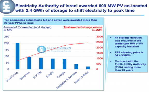 An auction for solar-plus-storage held in Israel by the country’s Electricity Authority awarded 609MW of solar PV alongside 2.4GWh of energy storage.