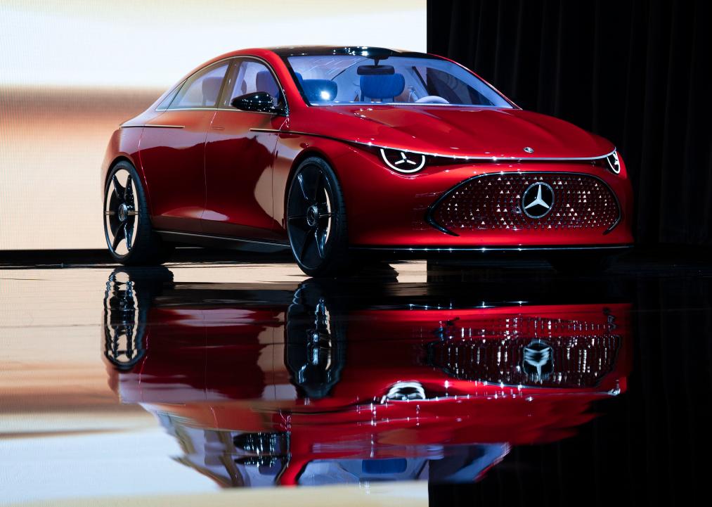 This photo taken on April 25, 2024 shows a Mercedes-Benz CLA-Class concept car displayed at the 2024 Beijing International Automotive Exhibition in Shunyi Distr…
