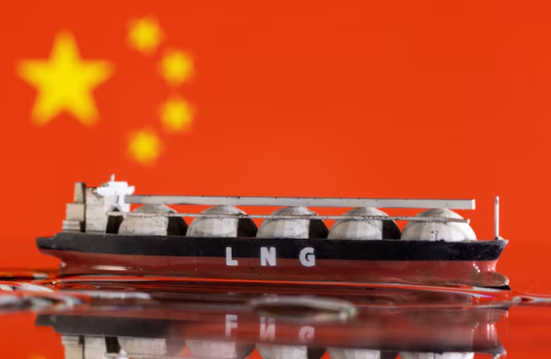 Model of LNG tanker is seen in front of China's flag in this illustration taken May 19, 2022. REUTERS/Dado Ruvic/Illustration/File Photo Purchase Licensing …