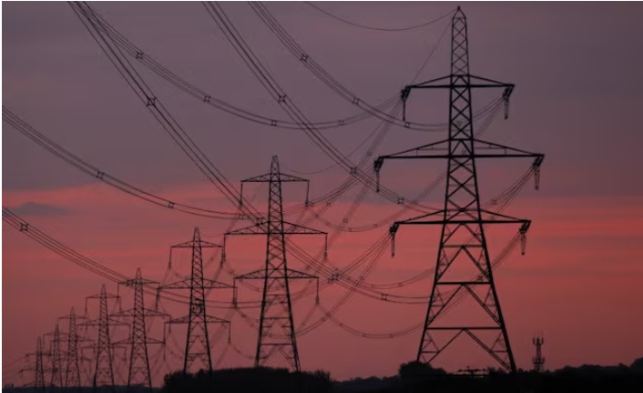 The sun rises behind electricity pylons near Chester, northern England October 24, 2011. REUTERS/Phil Noble/File photo Purchase Licensing RightsBritain's en…