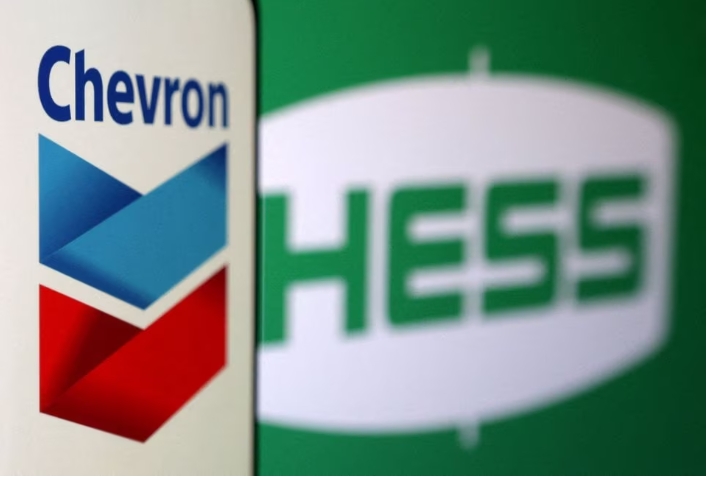 Chevron and Hess logos are seen in this illustration taken, October 23, 2023. REUTERS/Dado Ruvic/Illustration/File Photo Acquire Licensing RightsExxon Mobil'…