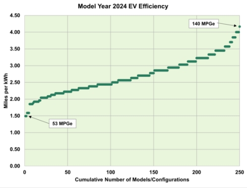DOE: Efficiency of My 2024 EVs Ranges From 53 to 140 MPGe