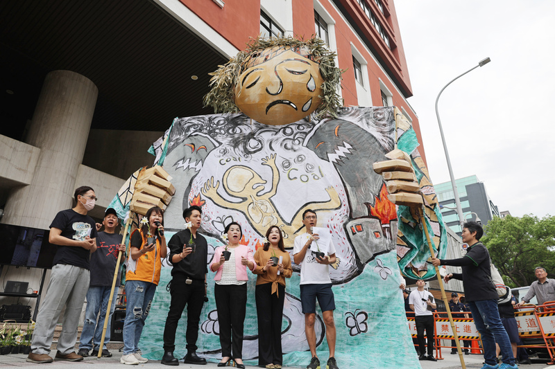 NGOs call for end of coal-fired power generation by 2028. (CNA photo)NGOs, including Air Clean Taiwan (ACT), gathered outside the legislature on Earth Day (Apri…