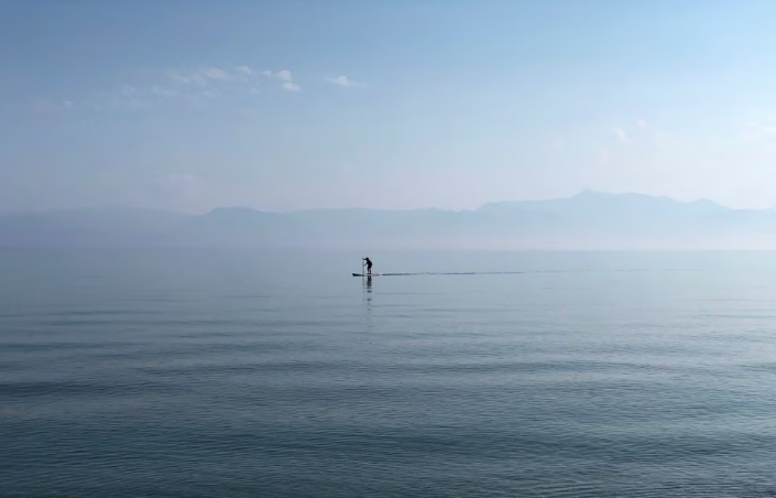 A man paddles in the waters of the Ionian Sea near Sidari settlement on the island of Corfu, Greece July 26, 2019. REUTERS/Vasily Fedosenko/File Photo Acquire L…