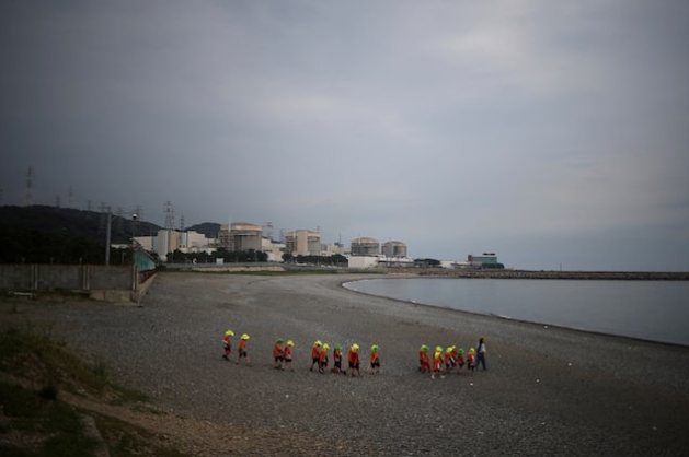 Children visit a seashore as Wolseong Nuclear Power Plant is seen in the background at Naa-ri village in Gyeongju, South Korea, August 23, 2022.South Korea fina…
