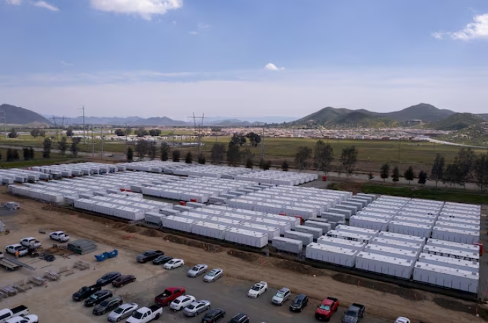 A drone view shows California's largest battery storage facility, as it nears completion on a 43-acre site in Menifee, California, U.S., March 28, 2024. REU…