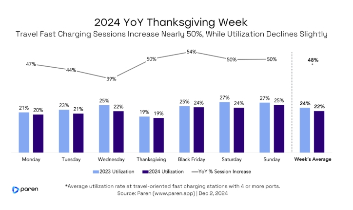 Apparently, at the year’s peak charging time in the US, EV fast charging was up nearly 50% compared to the same time in 2023. That peak charging time is T…