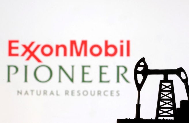 ExxonMobil and Pioneer Natural Resources logos are seen in this illustration Top US oil producer ExxonMobil's planned acquisition of the No. 1 Permian shale…